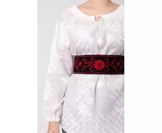 Brau Traditional Negru cu Motiv Floral Rosu- BTR12