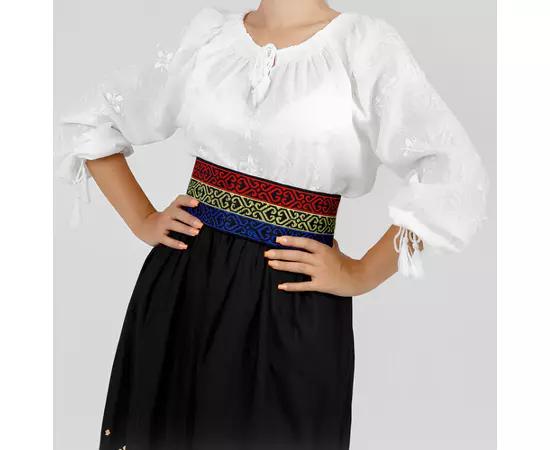 Brau Traditional Negru cu Motiv Geometric Tricolor- BTR06