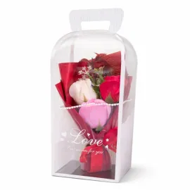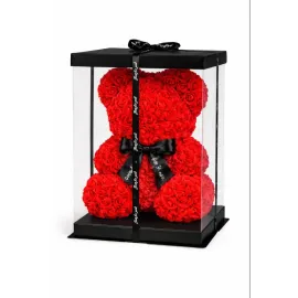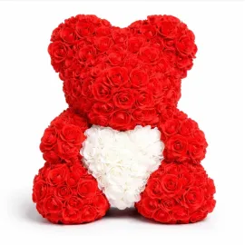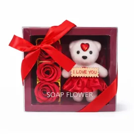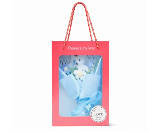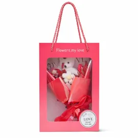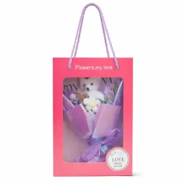 Un cadou delicat, creat pentru a transmite emoție și tandrețe din prima clipă. Aranjamentul floral, completat de un ursuleț adorabil, este prezentat într-o cutie elegantă cu fereastră, care lasă să se vadă frumusețea detaliilor din interior. Fundița fină și mesajele romantice transformă acest produs într-o surpriză perfectă pentru o persoană dragă.