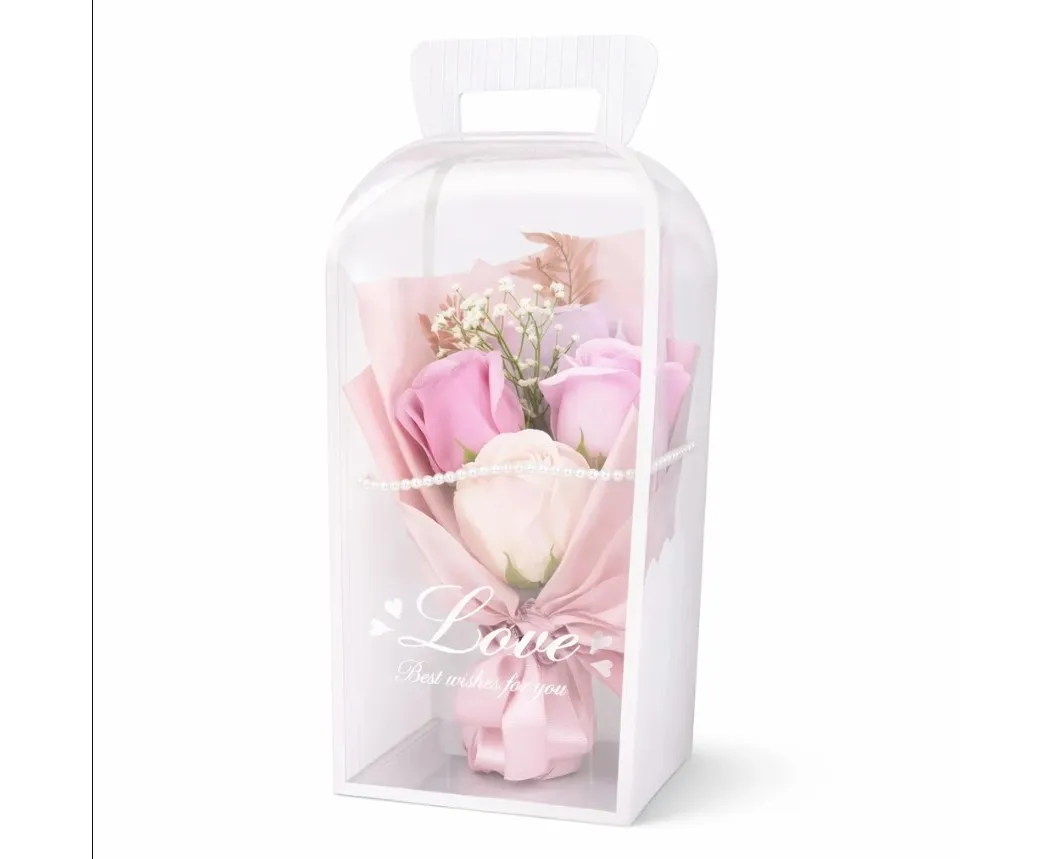 Transformă un moment obișnuit într-o amintire de neuitat cu acest cadou floral elegant, creat pentru a impresiona de la prima vedere. Aranjamentul delicat, în nuanțe fine de roz, este completat de detalii rafinate și prezentat într-o cutie transparentă premium, cu mesajul „Love – Best wishes for you”, gata de oferit fără niciun efort suplimentar.
