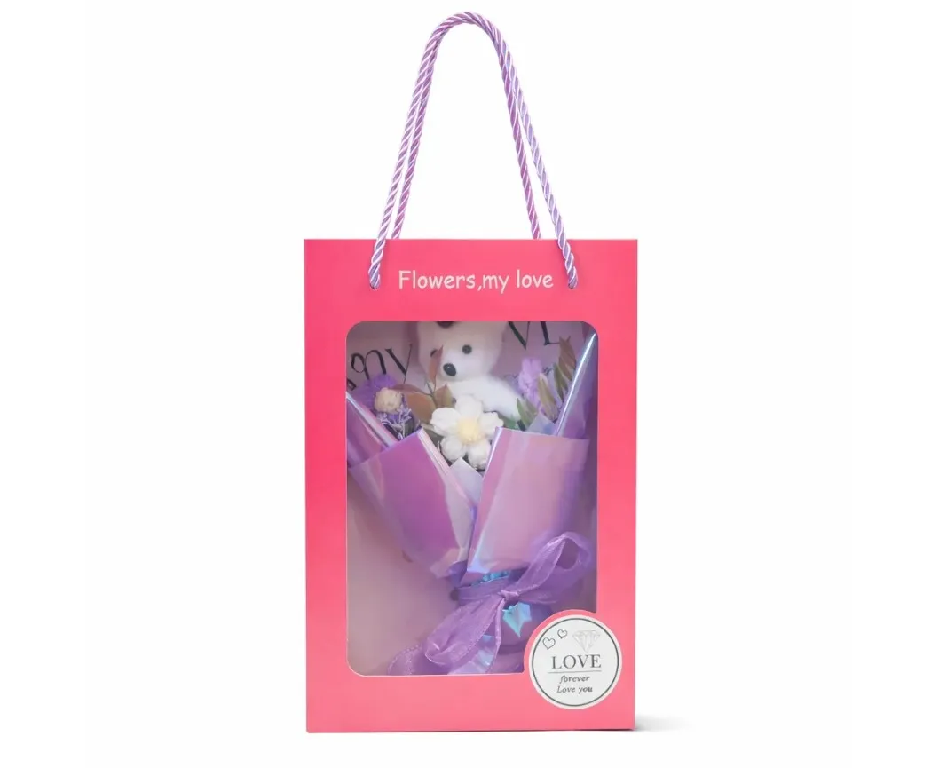 Cadou floral Mov cu Ursulet - KRMS110