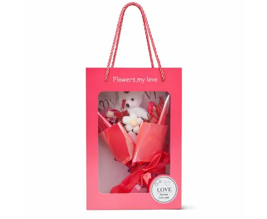Cadou floral Rosu cu Ursulet - KRMS112