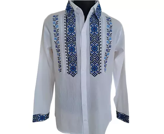 Camasa Barbateasca Traditionala Alba cu Motiv Floral Albastru - CTI03