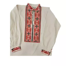 Camasa Barbateasca Traditionala Alba cu Motiv Floral Albastru - CTI03