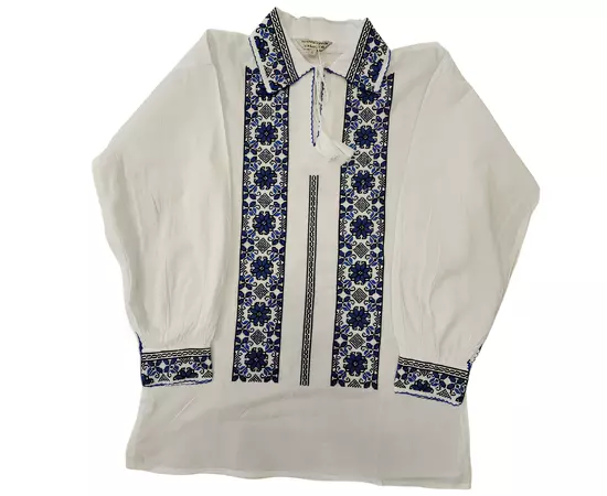 Camasa Barbateasca Traditionala Alba cu Motiv Floral Albastru - CTI17