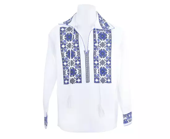 Camasa Barbateasca Traditionala Alba cu Motiv Floral Albastru - CTI34