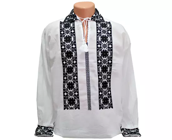 Camasa Barbateasca Traditionala Alba cu Motiv Floral Negru - CTI24