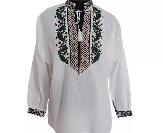 Camasa Barbateasca Traditionala Alba cu Motiv Floral Verde - CTI31