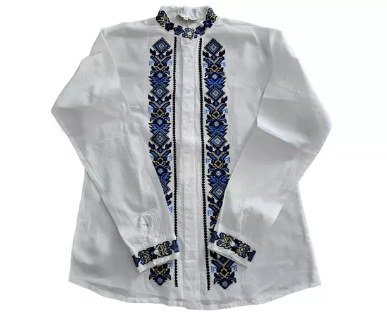 Camasa Barbateasca Traditionala Alba cu Motiv Geometric Albastru - CTI21