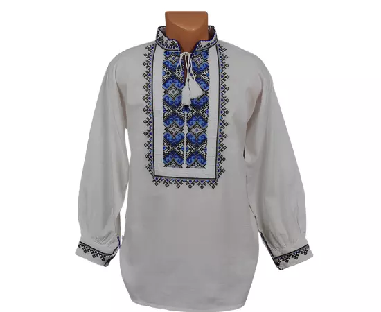 Camasa Barbateasca Traditionala Alba cu Motiv Geometric Albastru - CTI27