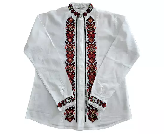 Camasa Barbateasca Traditionala Alba cu Motiv Geometric Rosu - CTI02
