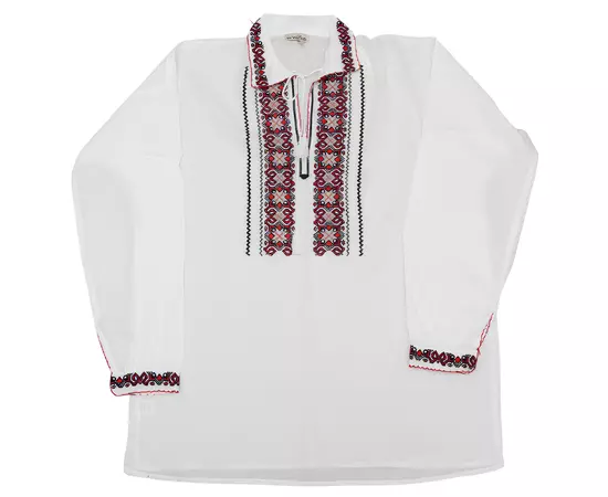Camasa Barbateasca Traditionala Alba cu Motiv Geometric Rosu - CTI20