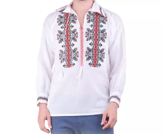 Camasa Barbateasca Traditionala Alba cu Motiv Geometric Rosu - CTI25
