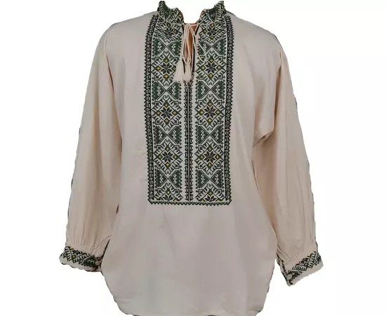 Camasa Barbateasca Traditionala Crem cu Motiv Floral Verde - CTI07