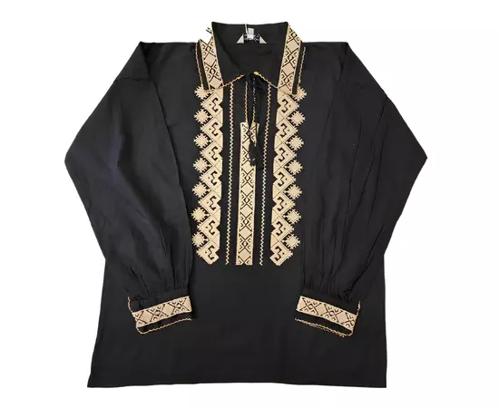 Camasa barbateasca traditionala neagra din bumbac cu maneca lunga si motiv traditional crem