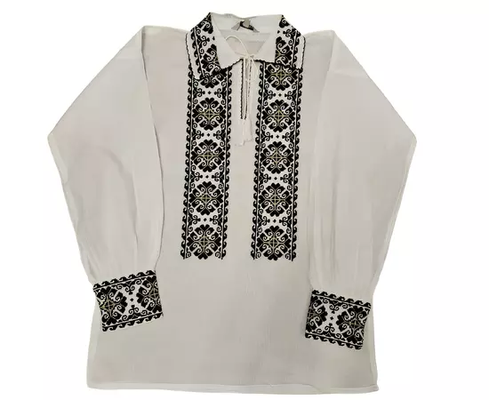 Camasa Tip Ie Barbateasca Alba cu Motiv Geometric Negru - CTI16