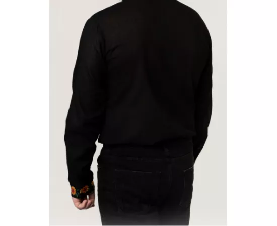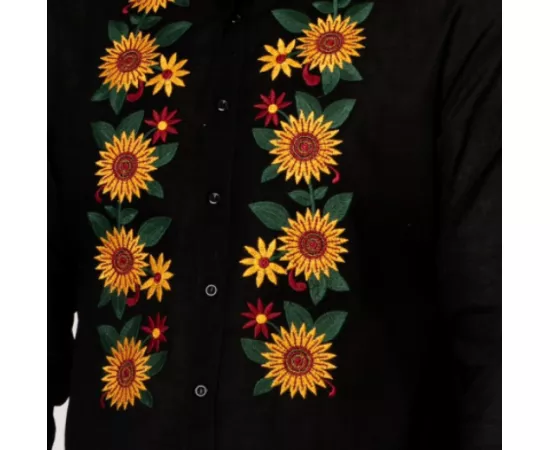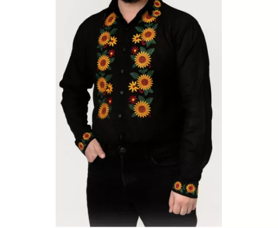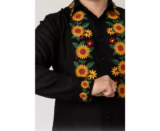 Camasa Tip Ie Barbateasca Neagra cu Motiv Floral Galben - CTI08