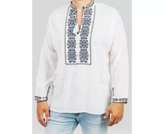 Camasa Tip Ie Barbateasca Traditionala cu Motiv Floral Albastru -CTI11