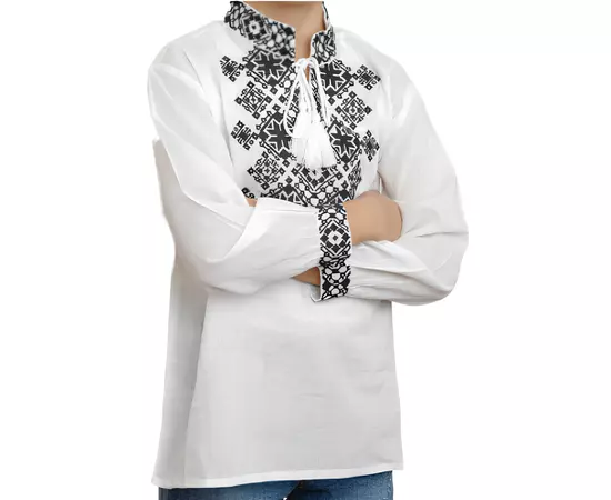 Camasa Tip Ie Traditionala de Baieti Alba cu Motiv Floral Albastru - ITB44