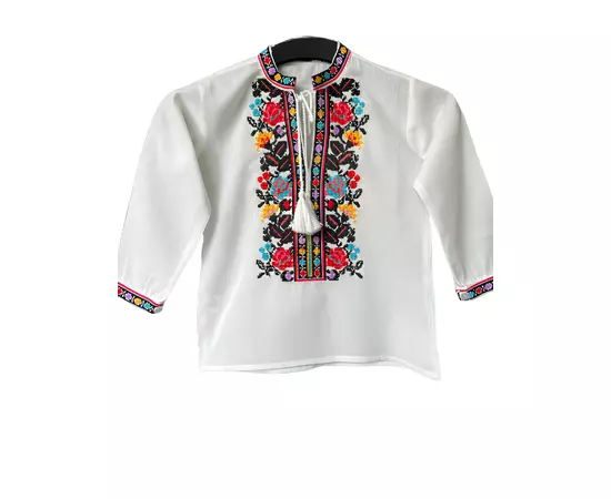 Camasa Tip Ie Traditionala de Baieti Alba cu Motiv Floral Multicolor - ITB10