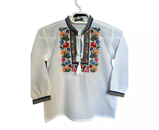 Camasa Tip Ie Traditionala de Baieti Alba cu Motiv Floral Multicolor - ITB100