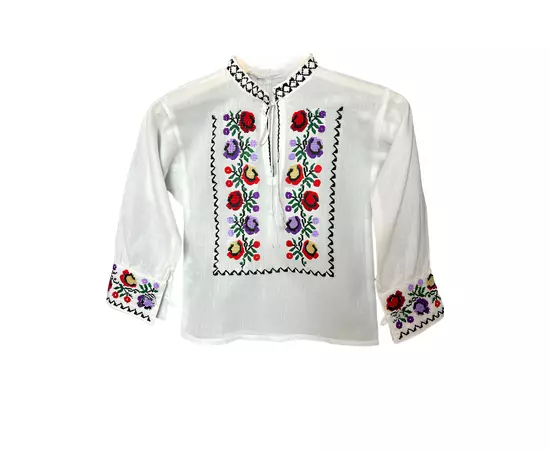 Camasa Tip Ie Traditionala de Baieti Alba cu Motiv Floral Multicolor - ITB23