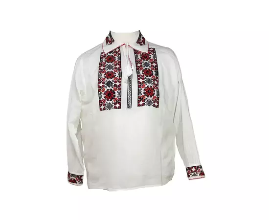 Camasa Tip Ie Traditionala de Baieti Alba cu Motiv Floral Rosu - ITB09
