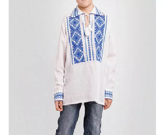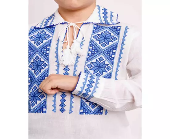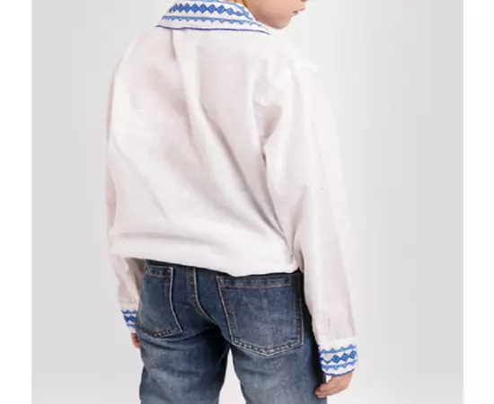 Camasa Tip Ie Traditionala de Baieti Alba cu Motiv Geometric Albastru - ITB11