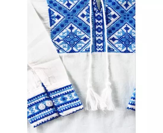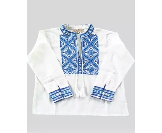 Camasa Tip Ie Traditionala de Baieti Alba cu Motiv Geometric Albastru - ITB12