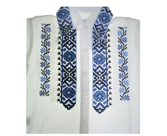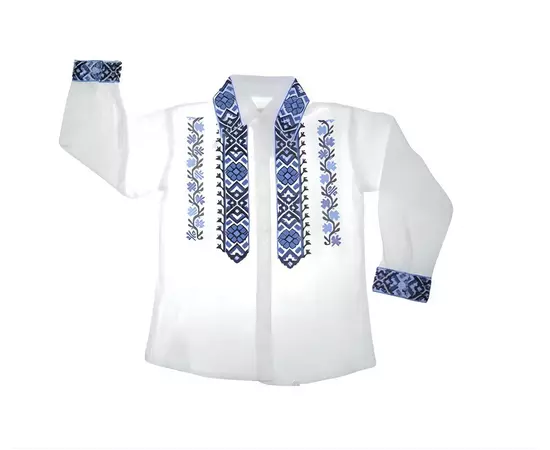 Camasa Tip Ie Traditionala de Baieti Alba cu Motiv Geometric Albastru - ITB14