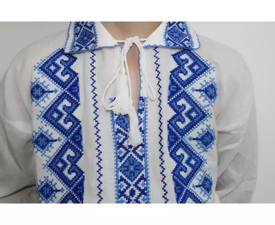 Camasa Tip Ie Traditionala de Baieti Alba cu Motiv Geometric Albastru - ITB15
