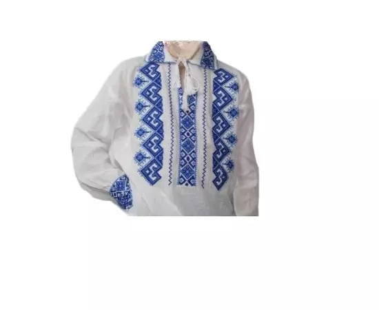 Camasa Tip Ie Traditionala de Baieti Alba cu Motiv Geometric Albastru - ITB15