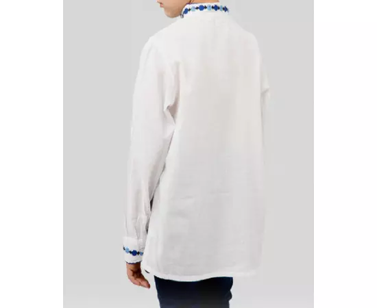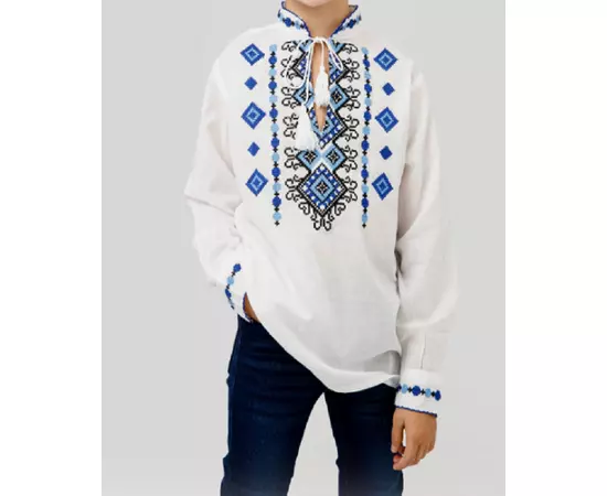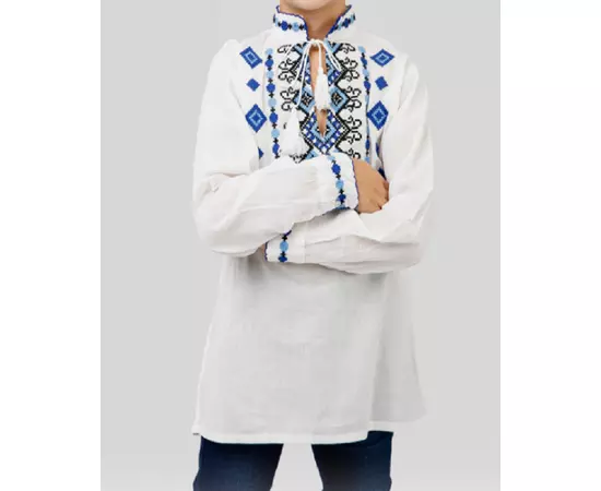 Camasa Tip Ie Traditionala de Baieti Alba cu Motiv Geometric Albastru - ITB16