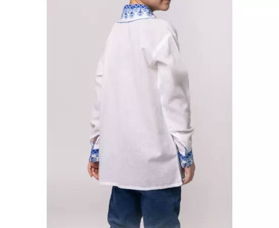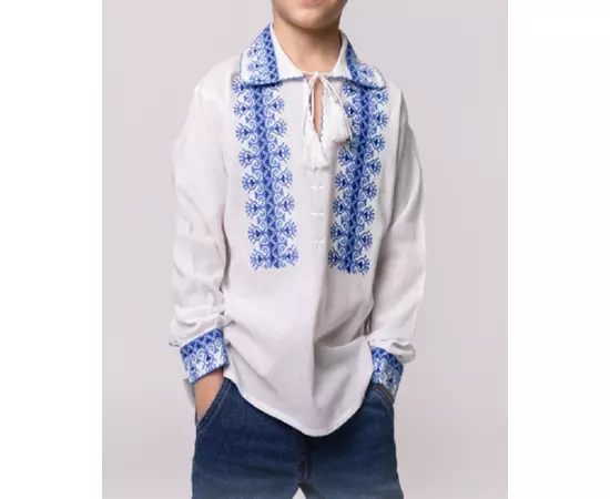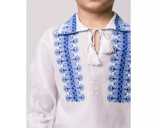 Camasa Tip Ie Traditionala de Baieti Alba cu Motiv Geometric Albastru - ITB21