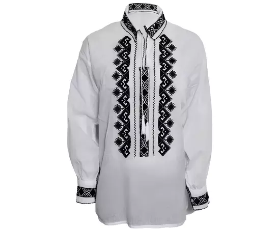 Camasa Tip Ie Traditionala de Baieti Alba cu Motiv Geometric Negru - ITB17