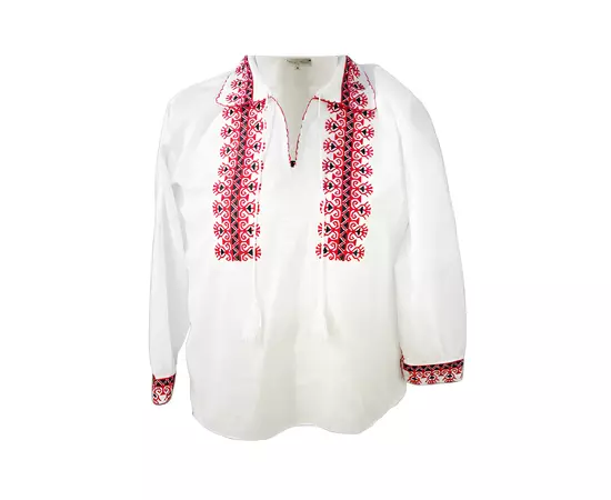 Camasa Tip Ie Traditionala de Baieti Alba cu Motiv Geometric Rosu - ITB20