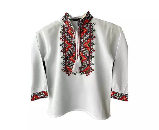 Camasa Traditionala de Baieti Alba cu Motiv Floral Rosu - ITB29