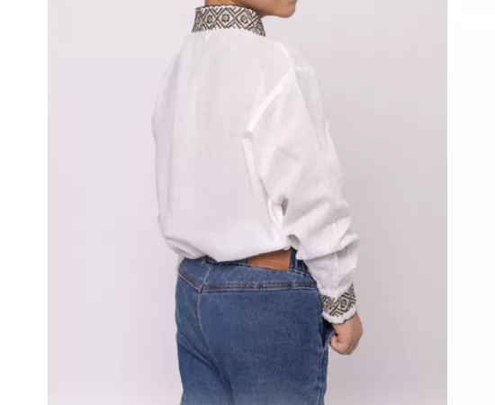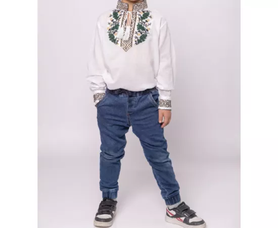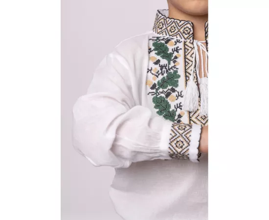 Camasa Traditionala de Baieti Alba cu Motiv Floral Verde - ITB31