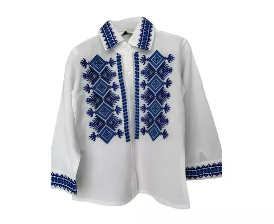 Camasa Traditionala de Baieti Alba cu Motiv Geometric Albastru - ITB28