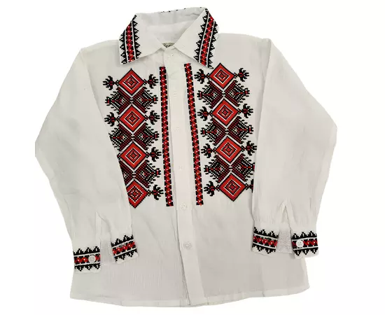 Camasa Traditionala de Baieti Alba cu Motiv Geometric Rosu - ITB38