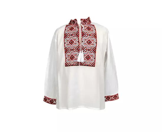 Camasa Traditionala de Baieti Alba cu Motiv Geometric Rosu - ITB39