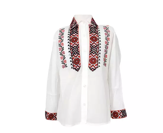 Camasa Traditionala de Baieti Alba cu Motiv Geometric Rosu - ITB42