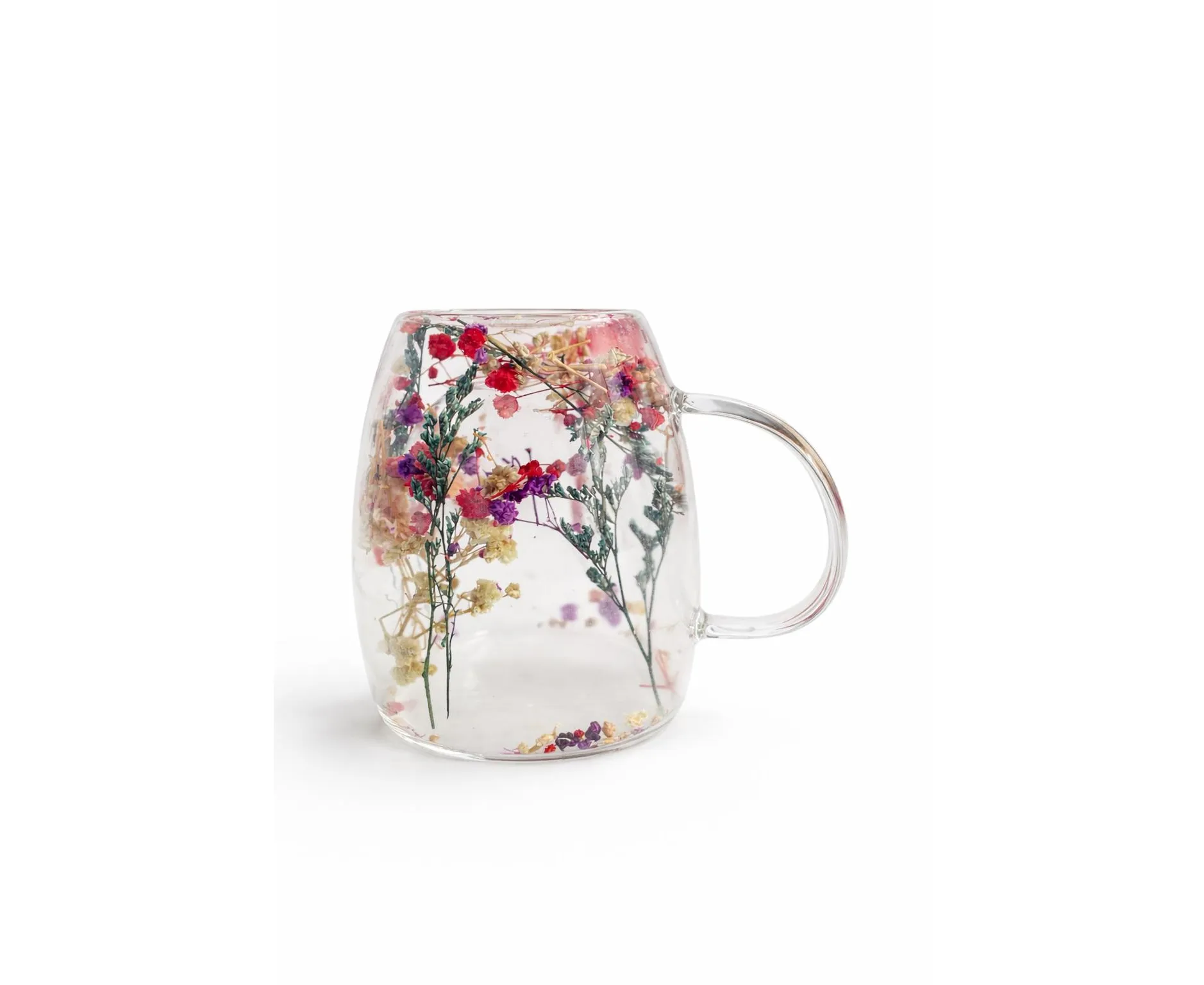 Cana din sticla borosilicata pereti dubli 350ml flori uscate multicolore - INV04