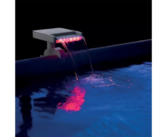 Cascada cu led multicolor pentru piscine supraterane este recomandata pentru piscine cu cadru metalic si ilumineaza in 3 culori: rosu, albastru, verde.