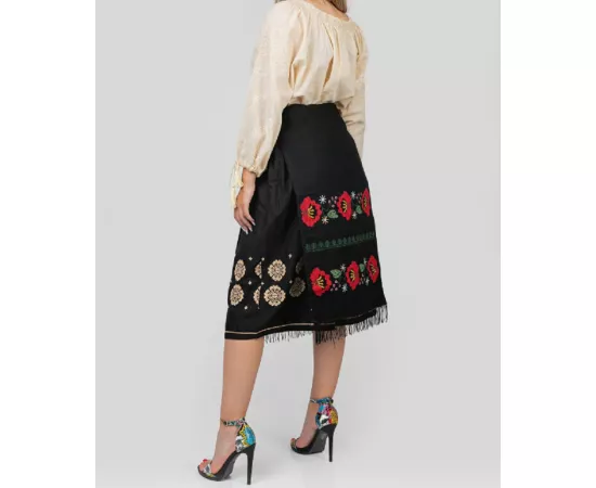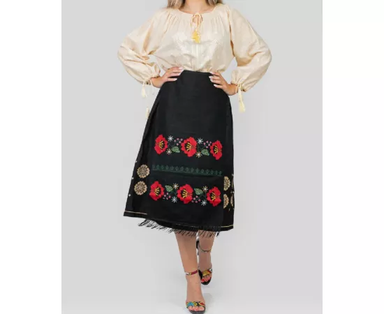 Catrinta Traditionala Neagra cu Broderie Florala Rosie - FTSF04
