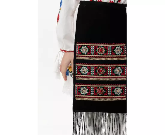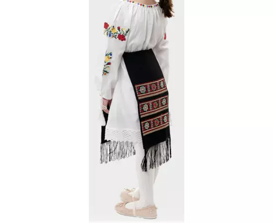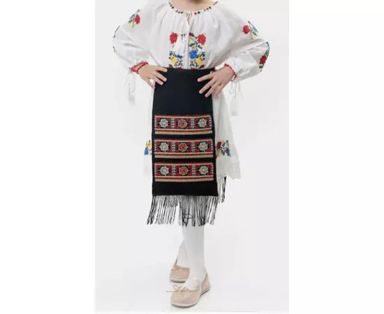 Catrinta Traditionala Neagra pentru Fetite cu Broderie Florala Multicolora - CTF02
