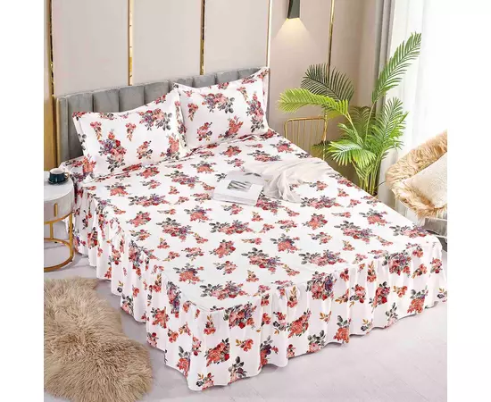 Cearceaf De Pat Cu Volane si 2 Fete De Perna Bumbac Finet - JOJ69