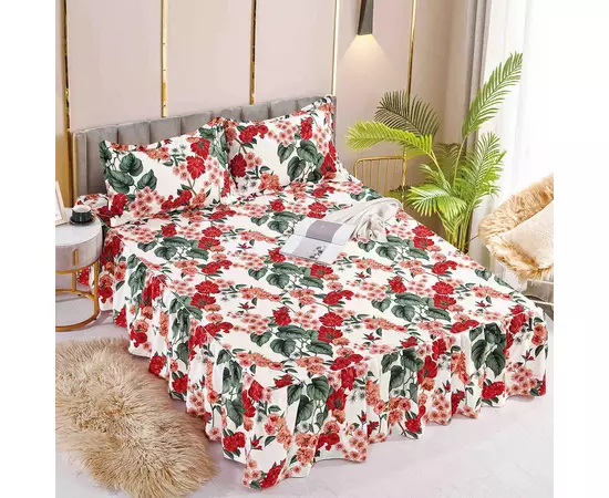 Cearceaf De Pat Cu Volane si 2 Fete De Perna Bumbac Finet - JOJ72