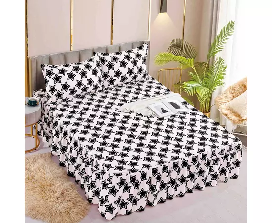 Cearceaf De Pat Cu Volane si 2 Fete De Perna Bumbac Finet - JOJ74