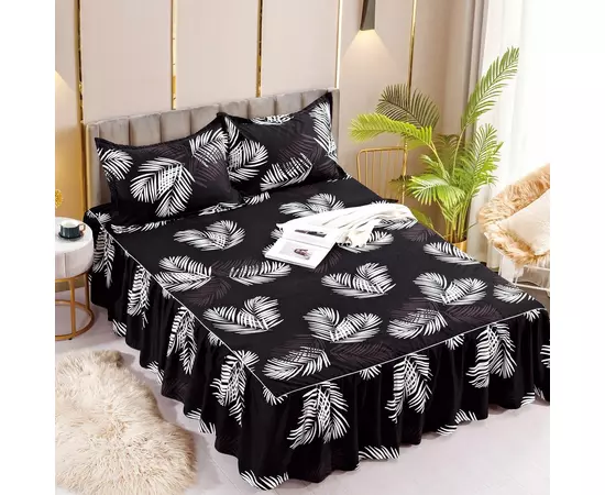 Cearceaf De Pat Cu Volane si 2 Fete De Perna Bumbac Finet - JOJ80